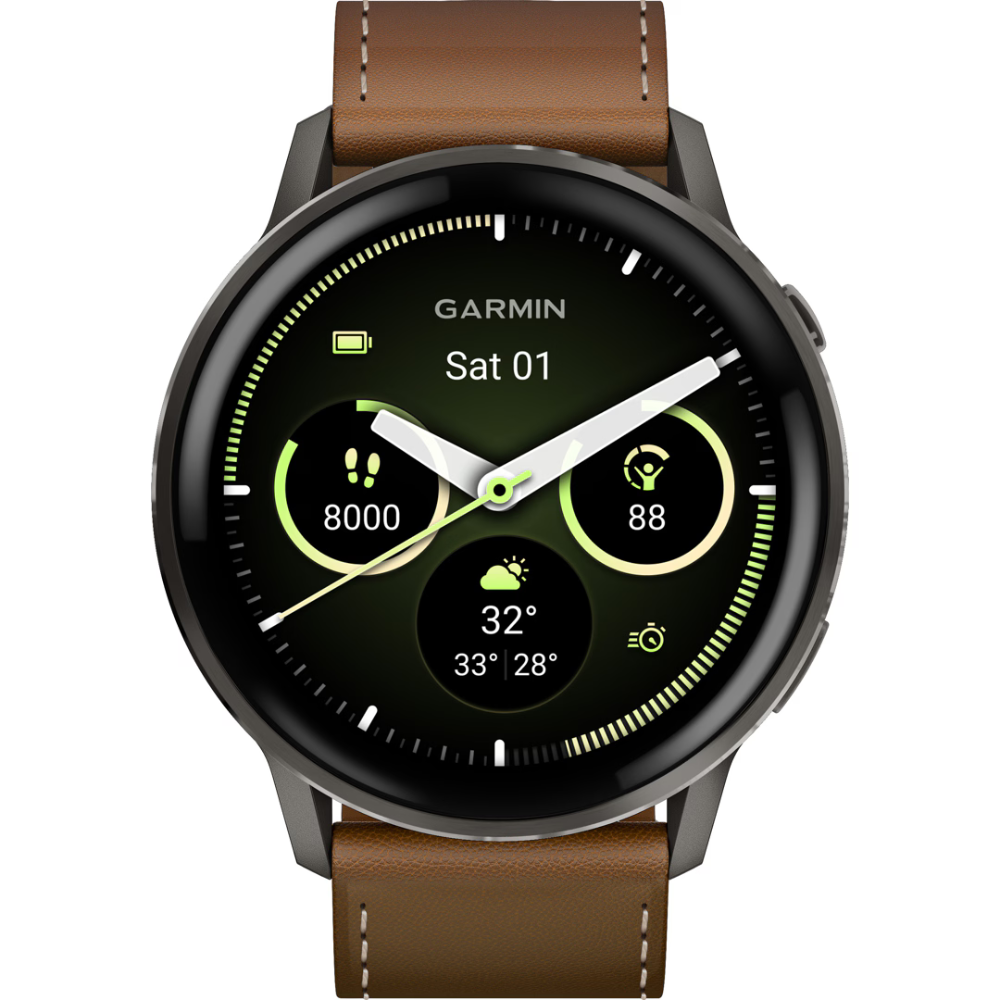 Круглосуточный мониторинг: ЧСС, вариабельность сердечного ритма (ВСР), стресс, Body Battery™, Pulse Ox, температура кожи