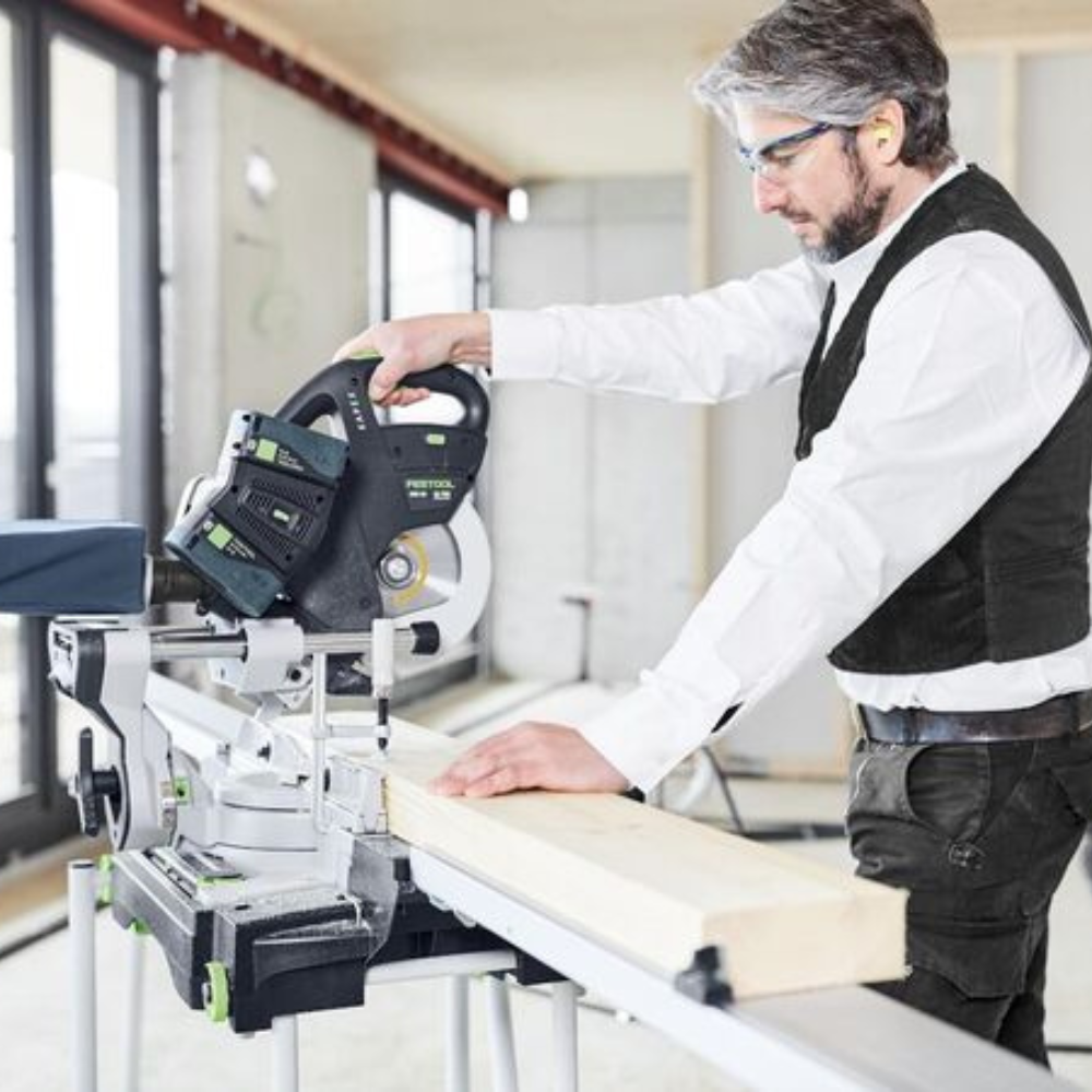 Новая аккумуляторная торцовочная пила KAPEX KSC 60 EB сочетает непревзойдённую точность резов, высокую мобильность и мощность аккумуляторного питания. Благодаря системе протяжки диска по двум направляющим на подшипниках пильный диск ведётся без качания и рывков, обеспечивая идеально ровные торцевые и наклонные пропилы. Широкий диапазон углов скоса до 60° и наклона диска до 47° позволяет выполнять сложные и точные работы, включая подгонку угловых стыков. Продуманная система оснастки Festool, включая малку-угломер, мешок-пылесборник, эргономичную тележку-трансформер и предустановку частоты вращения под материал, делает работу безопасной, удобной и высокоэффективной.