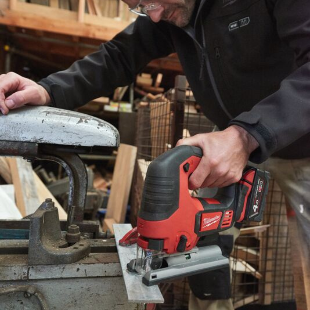 Аккумуляторный лобзик Milwaukee M18 BJS-402C используется для резки различных материалов, включая дерево и металл. Высокая производительность достигается благодаря пяти положениям регулировки маятникового хода, что позволяет настраивать инструмент под различные задачи. Защита двигателя и аккумулятора от перегрузки обеспечивает долгий срок службы инструмента, а удобная бесключевая регулировка угла наклона и быстрая смена полотна повышают удобство работы. Для аккуратной работы предусмотрены функции сдува опилок и светодиодная подсветка рабочей области.