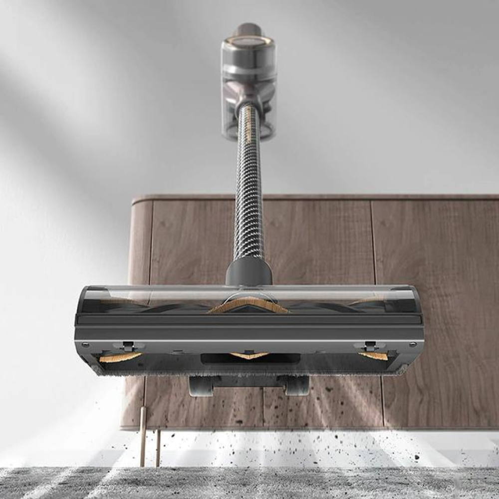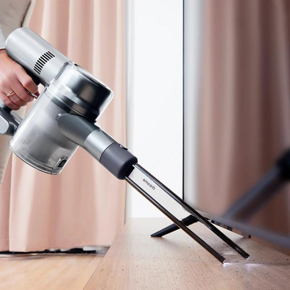 Благодаря вертикальной конструкции и малому весу (1.6 кг) пылесос Dreame V12 PRO не составит труда переносить с места на место. Прибор не зависит от розетки, а радиус его действий не ограничен – он способен до 85 минут работать без подзарядки. Сила всасывания регулируется автоматически в зависимости от уровня загрязнения пола, а сор отправляется в съемный фильтр объемом 0.5 л. Чтобы пылесос Dreame V12 PRO справлялся с самыми разными задачами во время уборки, производитель оснастил его целым набором насадок, включая антиклещевую и щелевую. За компактное размещение прибора при хранении отвечает настенная док-станция.