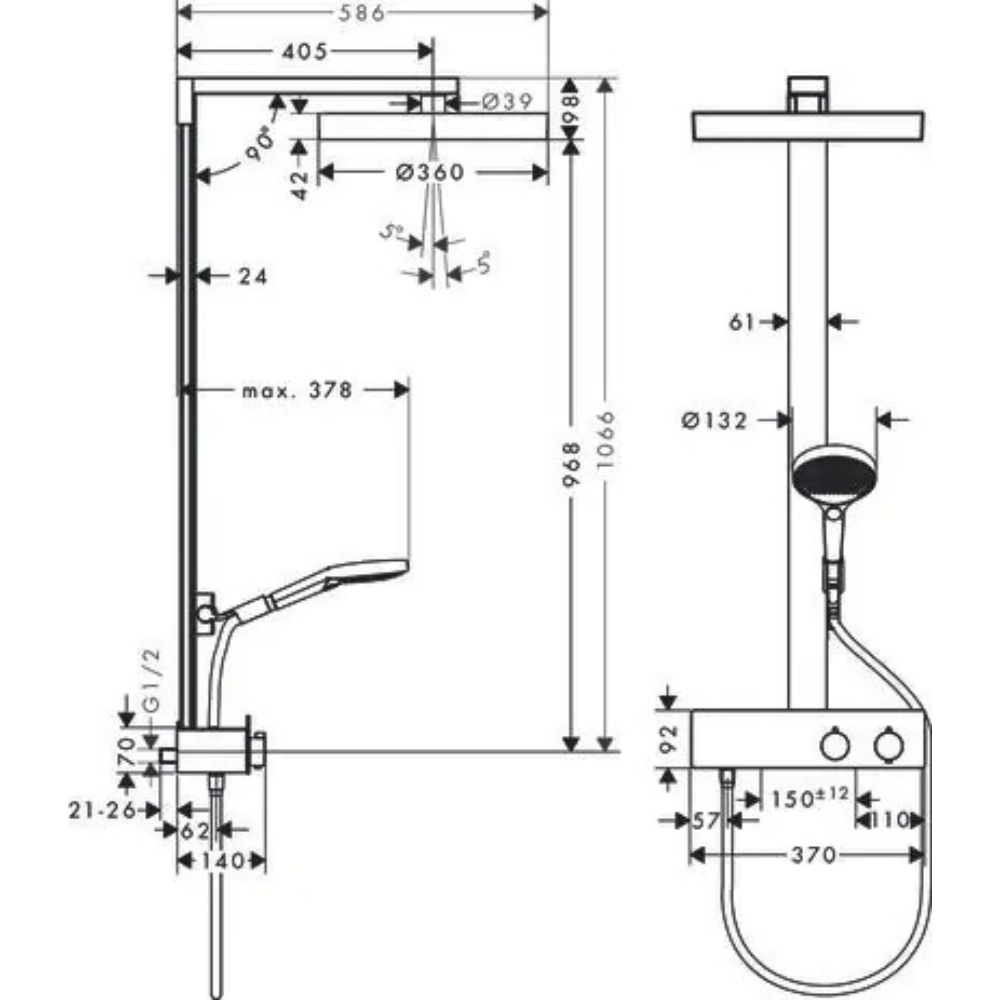Hansgrohe Rainfinity Showerpipe 360 26853000 объединяет верхний и ручной душ с термостатом, создавая современное и безопасное решение для ванной комнаты. Система сочетает немецкое качество, эргономичный дизайн и функциональность, обеспечивая комфортное и безопасное принятие душа.