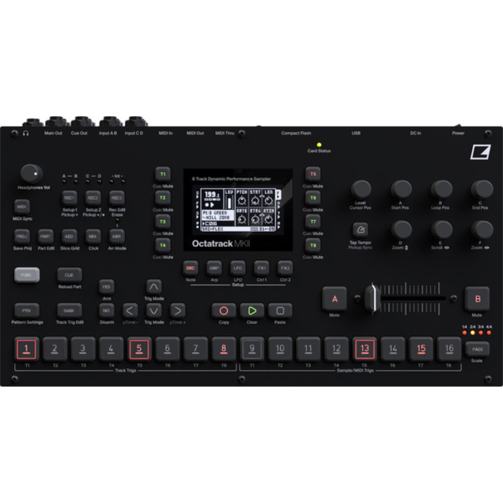 Octatrack MKII оснащён 8 стерео-дорожками для сэмплирования и обработки аудио и 8 независимыми MIDI-треками для управления внешними синтезаторами, драм-машинами и эффектами. Это делает устройство центральным узлом гибридных сетапов.