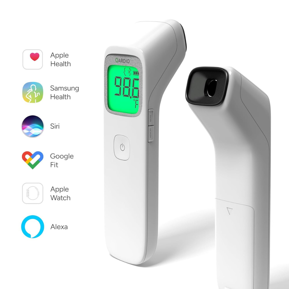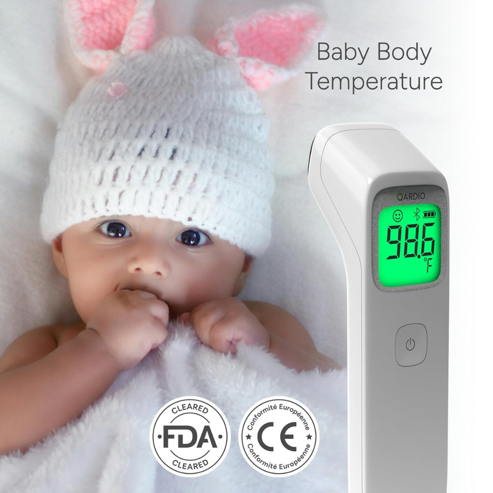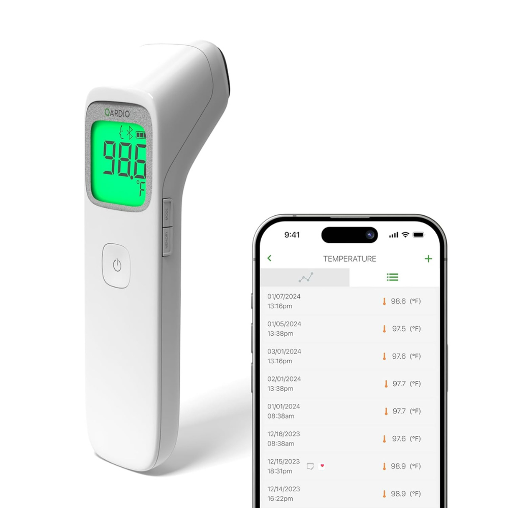 Термометр может подключаться к мобильному приложению Qardio, позволяя сохранять данные измерений и отслеживать изменения температуры.