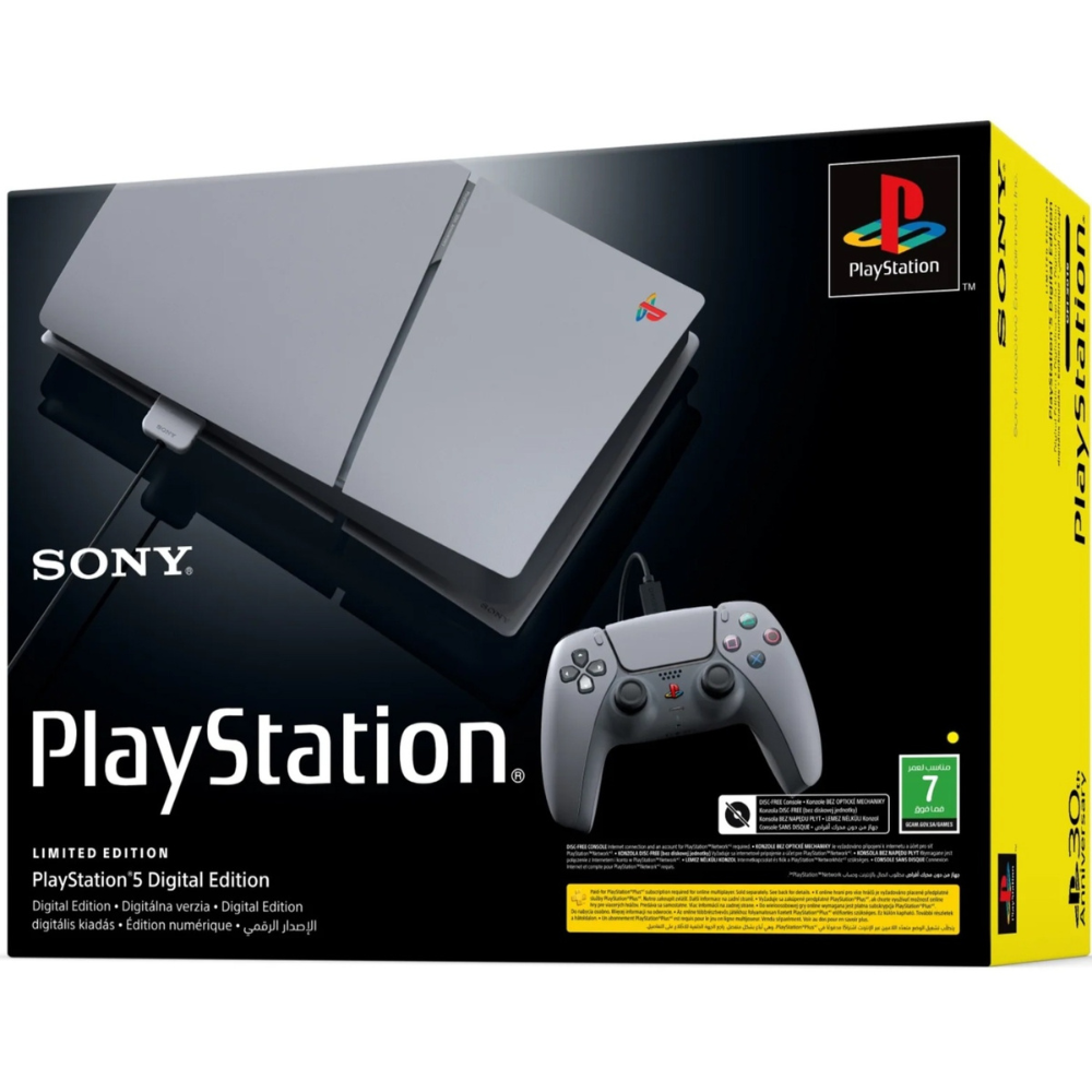 PlayStation 5 Slim Digital Edition в версии 30th Anniversary Limited Edition — это лимитированная консоль, выпущенная в честь 30-летия бренда PlayStation. Модель сочетает в себе компактный форм-фактор, флагманскую производительность и эксклюзивное оформление. Ограниченный тираж и уникальные элементы дизайна делают эту версию не просто игровой системой, а полноценным коллекционным объектом для поклонников бренда.