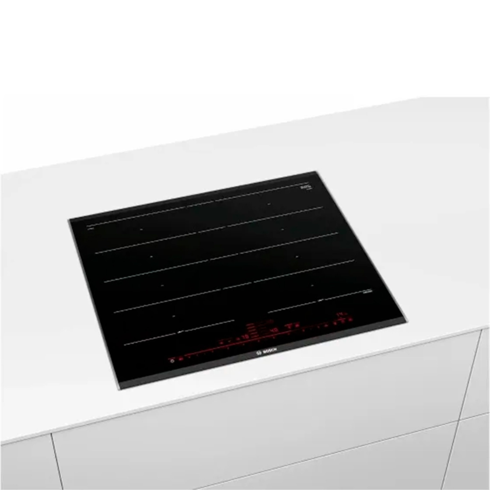 Индукционная варочная панель Bosch PXY675DC5Z из серии Serie 8 создана для тех, кто ожидает от техники не только функциональности, но и визуальной гармонии. Элегантная стеклокерамическая поверхность в чёрном цвете, прямой край и аккуратный металлический профиль по бокам придают панели современный и аккуратный вид. Формат идеально подходит для интеграции в кухонные гарнитуры, подчёркивая чистые линии и премиальный стиль пространства.