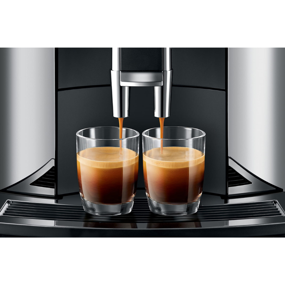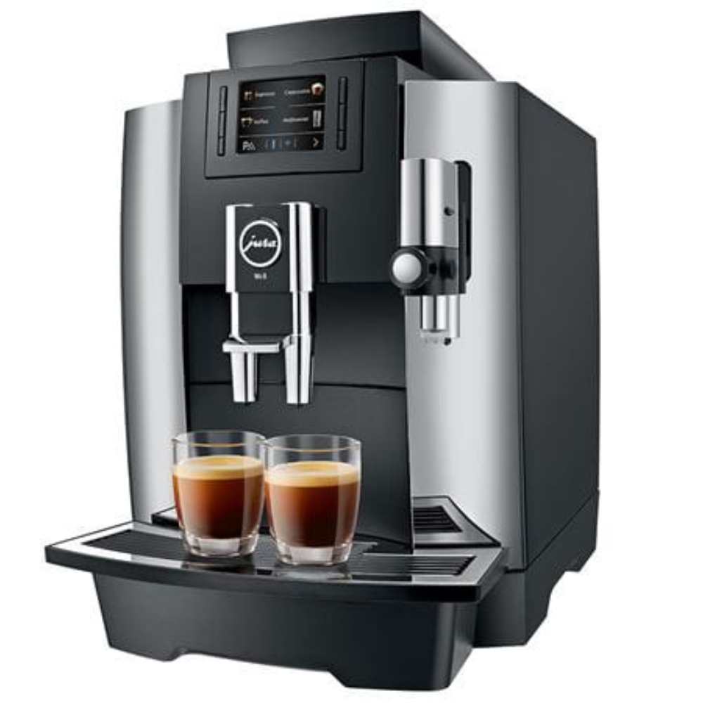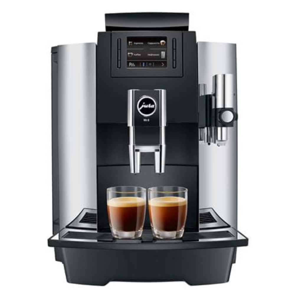 Jura WE8 Chrom – идеальный выбор для тех, кто ценит эстетичность, многогранность и непревзойденность в приготовлении кофейных напитков. Бункер для воды объемом 3 л, контейнер для кофейных зерен вместимостью 500 граммов и контейнер для кофейных отходов, рассчитанный на 25 порций, делают эту элегантную профессиональную кофемашину идеально подходящей для использования там, где ежедневно готовится около 30 порций кофейных напитков. Инновационные технологии кардинально улучшают качество приготовления кофе. Функция One Touch позволяет одним нажатием кнопки приготовить такие популярные напитки, как латте маккиато, флэт уайт или капучино. Кнопки, расположенные на передней панели, и ЖК-дисплей с активной матрицей обеспечивают невероятно простое управление даже для неопытных пользователей.
