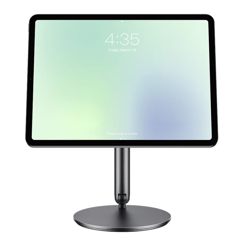 Встроенные магниты надёжно удерживают iPad, а утяжелённое основание обеспечивает стабильность даже при активном использовании экрана. Конструкция рассчитана на уверенную фиксацию в вертикальном и горизонтальном положении.