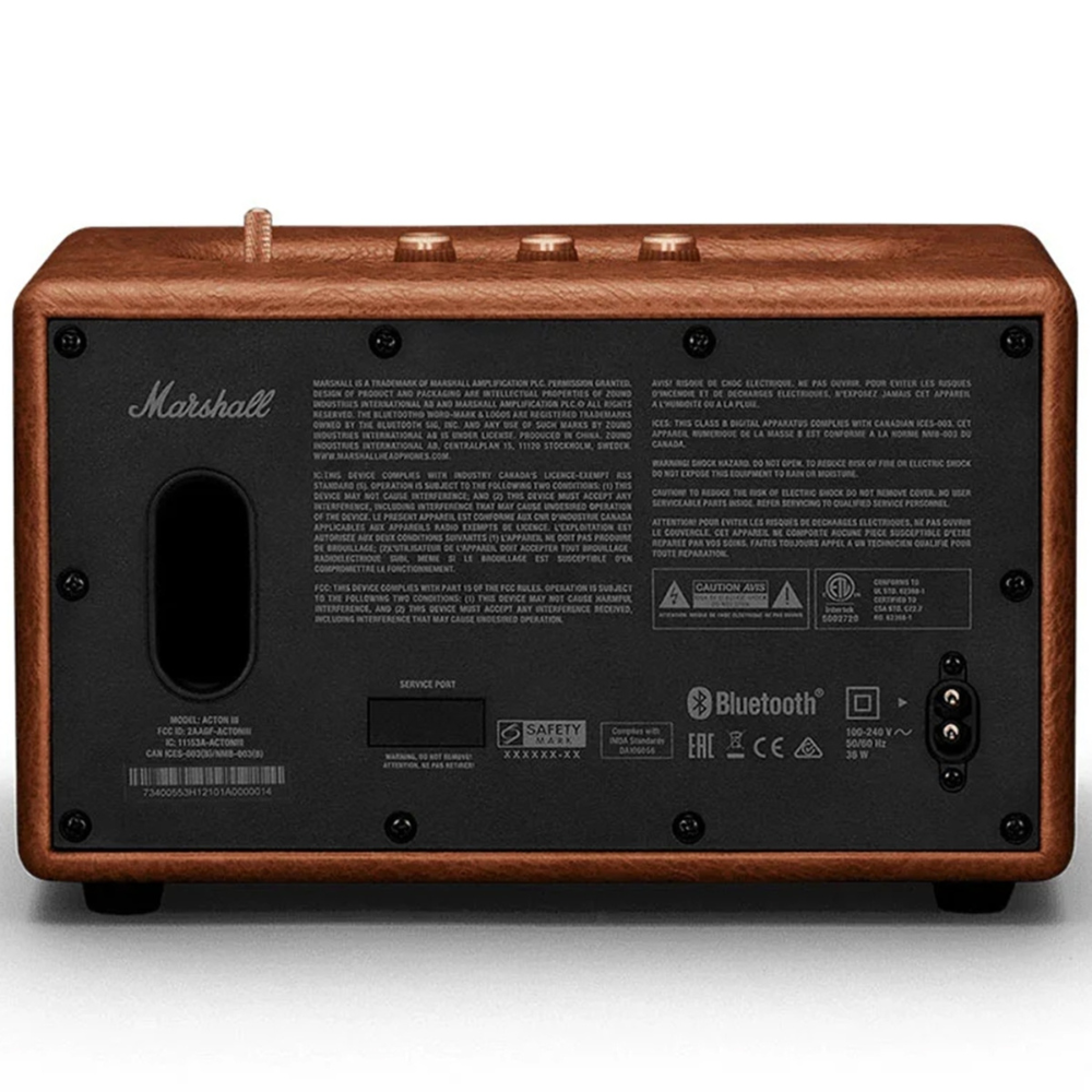 Marshall Acton III обеспечивает более широкий и насыщенный звуковой диапазон по сравнению с предыдущим поколением. Динамики, установленные под углом, и обновлённые волноводы формируют плотное, объёмное звучание, которое равномерно заполняет пространство. Технология Dynamic Loudness автоматически подстраивает тональный баланс, сохраняя выразительность баса, чистоту средних частот и детализацию высоких даже при низкой или высокой громкости.