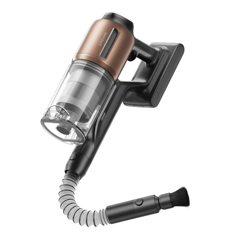 Пылесос поставляется с набором насадок для уборки щелей, мебели, полок и труднодоступных мест. Вращающаяся мягкая щетка и гибкий переходник расширяют функциональность, а съемный контейнер для мусора объёмом 0,6 л легко очищается под водой. База выполняет функции хранения и зарядки, полностью заряжая устройство за 4 часа.
