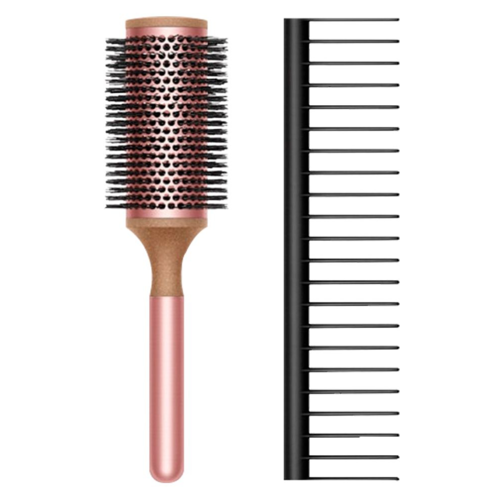 Правильный уход начинается с качественных инструментов. Набор расчёсок Dyson Round Brush Pale Rose + Detangling Comb создан специально для бережной и эффективной укладки. Они аккуратно распутывают пряди, уменьшают статическое электричество и помогают сохранить гладкость по всей длине.