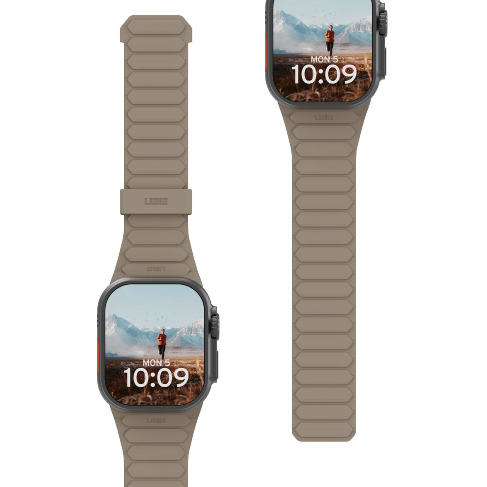 UAG Pathfinder Silicone оснащён двусторонним магнитным механизмом крепления, упрощающим регулировку и обеспечивающим плотную посадку. Антимикробный силикон устойчив к износу и легко очищается, сохраняя первоначальный вид. Индивидуальные вкладки позволяют адаптировать ремешок под предпочитаемый стиль, а универсальный дизайн делает его подходящим как для повседневных задач, так и для спорта.