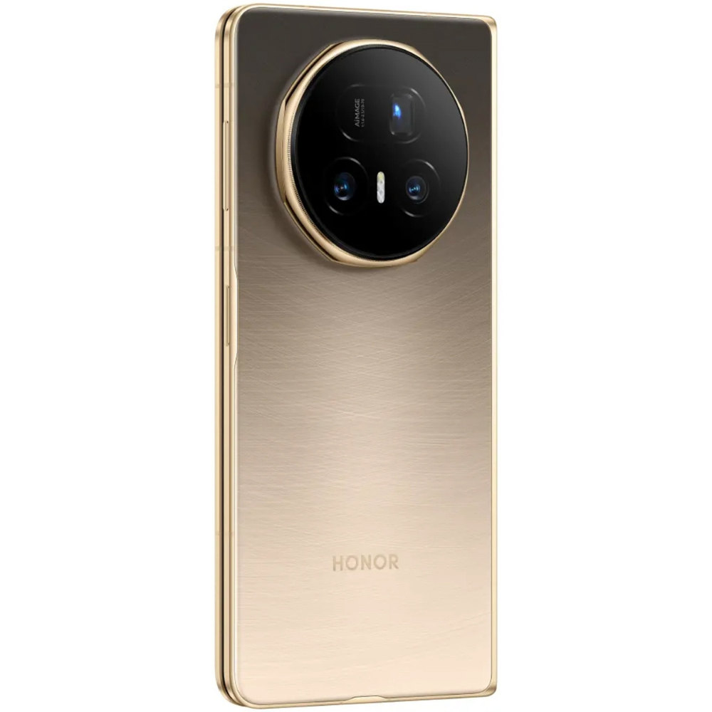 HONOR Magic V5 впечатляет тонкостью и лёгкостью. С толщиной 8,8 мм и весом 217 г смартфон удобно лежит в руке и не ощущается тяжёлым. Симметричный корпус с 3D-алмазными фасками создаёт элегантный и премиальный вид. Доступен в четырёх цветах: Dawn Gold, Reddish Brown, Ivory White и Black.