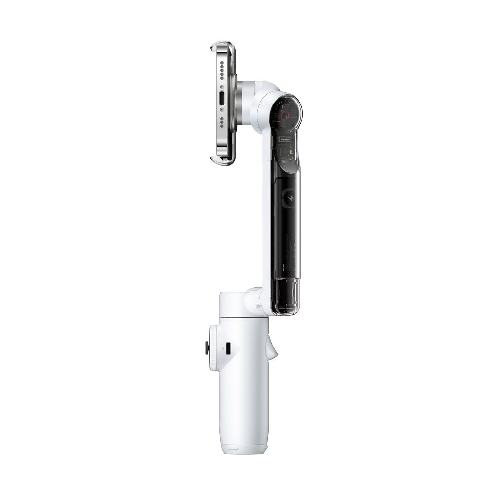 Insta360 Flow имеет компактные размеры и легкий вес, что делает его удобным для переноски и использования в любых условиях. Он легко крепится к телефону и позволяет быстро переключаться между различными режимами съемки.