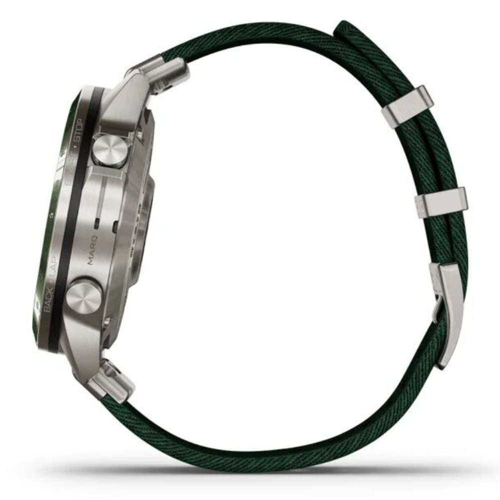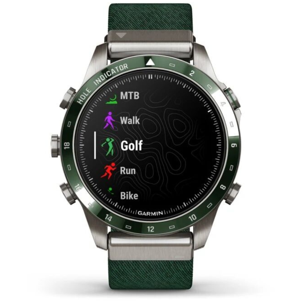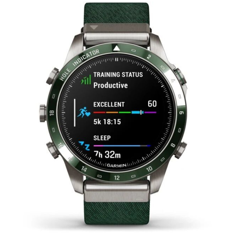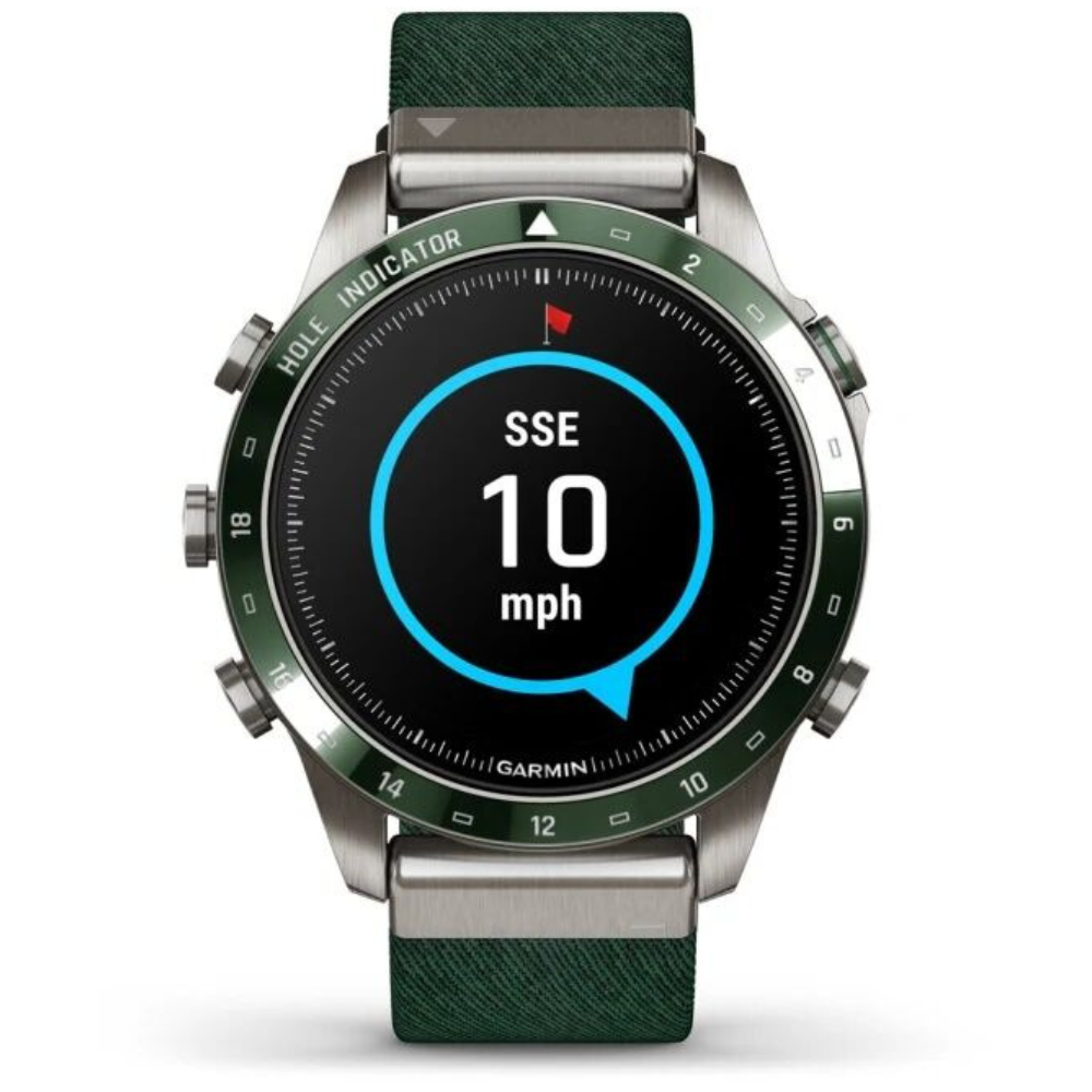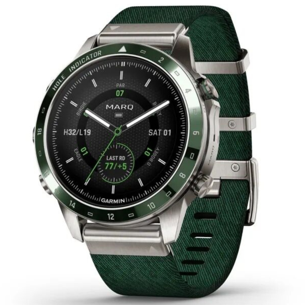 MARQ Golfer создан для тех, кто живет гольфом и стремится к совершенству в каждой игре. Эти часы-инструмент изготовлены из титана Grade 5 и оснащены куполообразным сапфировым стеклом, которое обеспечивает кристально чистое изображение на сенсорном AMOLED-дисплее. 46-миллиметровый корпус сочетает прочность и элегантность, а жаккардовый нейлоновый ремешок Tritone Green подчеркивает стиль владельца. Часы предлагают виртуального кэдди, учитывающего скорость и направление ветра, помогают выбрать подходящую клюшку, отображают расстояние, контуры грина, препятствия и позволяют точно рассчитывать удар с функцией PlaysLike Distance и PinPointer. Более 42 000 карт полей по всему миру уже загружены в устройство, а подключение датчиков Approach® CT10 обеспечивает отслеживание клюшек, расстояний и точного местоположения ударов. MARQ Golfer также ведет мониторинг здоровья и физической активности: измеряет пульс, отслеживает сон, стресс, энергию Body Battery™, Pulse Ox и дыхание, предоставляет анимированные тренировки, адаптивные планы Garmin Coach, показатели VO2 max и PacePro™. Часы поддерживают спортивные приложения для бега, плавания, велоспорта, триатлона, гольфа, серфинга, альпинизма, гребли и других видов спорта, оснащены GPS, Galileo, ГЛОНАСС с технологией SatIQ, датчиками ABC и мультиконтинентальными топографическими картами TopoActive, ClimbPro и лыжными картами. Устройства позволяют получать умные уведомления, управлять музыкой, использовать Garmin Pay™, подключать приложения через Connect IQ, а встроенные функции безопасности автоматически отправляют ваше местоположение в экстренных ситуациях. MARQ Golfer сочетает стиль, функциональность и технологическое совершенство, обеспечивая полное погружение в игру и контроль над своим здоровьем и тренировками.