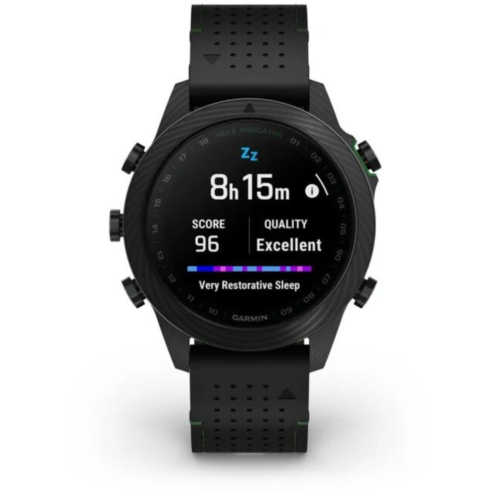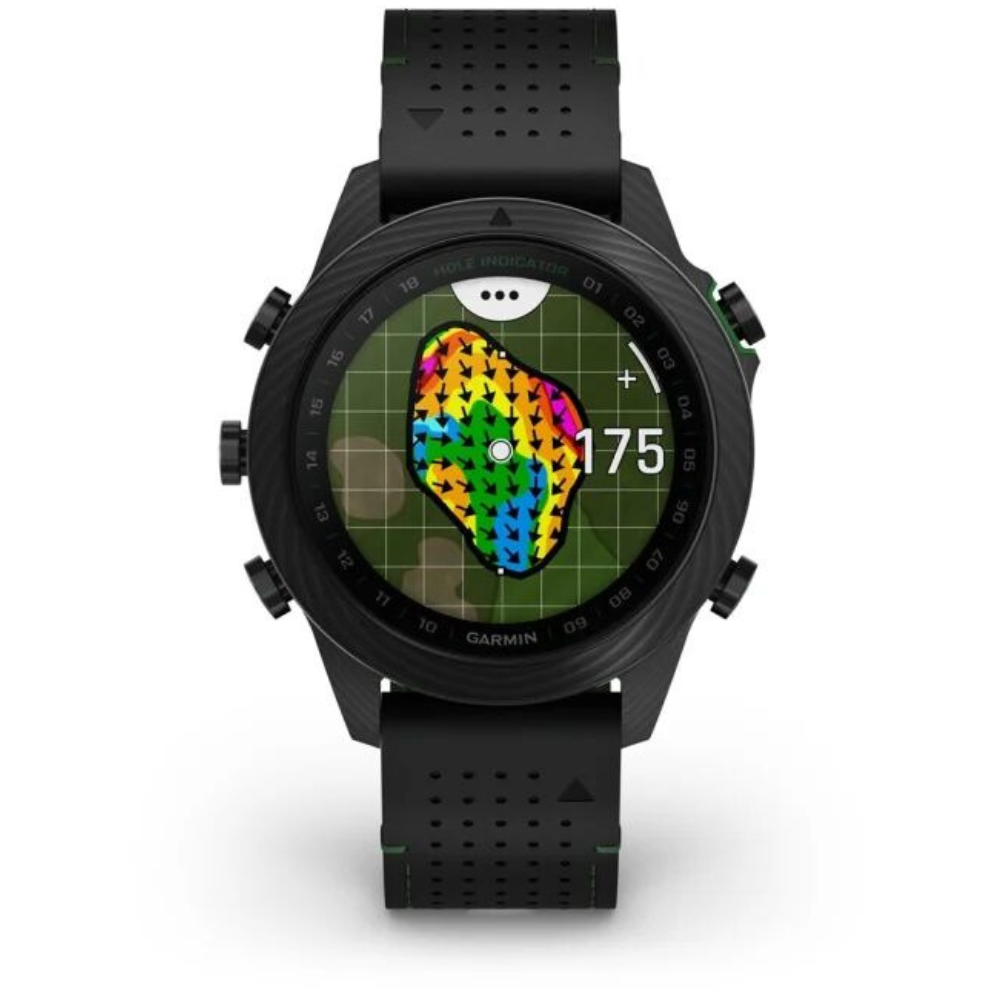 Эта премиальная модель создана специально для гольфистов и ценителей точных инструментов. Корпус выполнен из прочного плавленого углеродного волокна с сапфировым стеклом и оснащён ярким AMOLED-дисплеем. Часы поддерживают более 43 000 карт полей для гольфа, функции виртуального кэдди, отображение направления ветра и множество спортивных режимов. Это устройство объединяет стиль, долговечность и интеллектуальные технологии для игры на высшем уровне и активной жизни.
